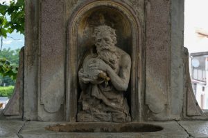 Rilievo di Maria Vergine: Il rilievo raffigura la Vergine seduta, avvolta da un ampio panneggio. La mano sinistra è posta sul petto mentre la destra sfoglia un libro posto su un leggio d’innanzi ad essa. Il capo reclino in atteggiamento devozionale